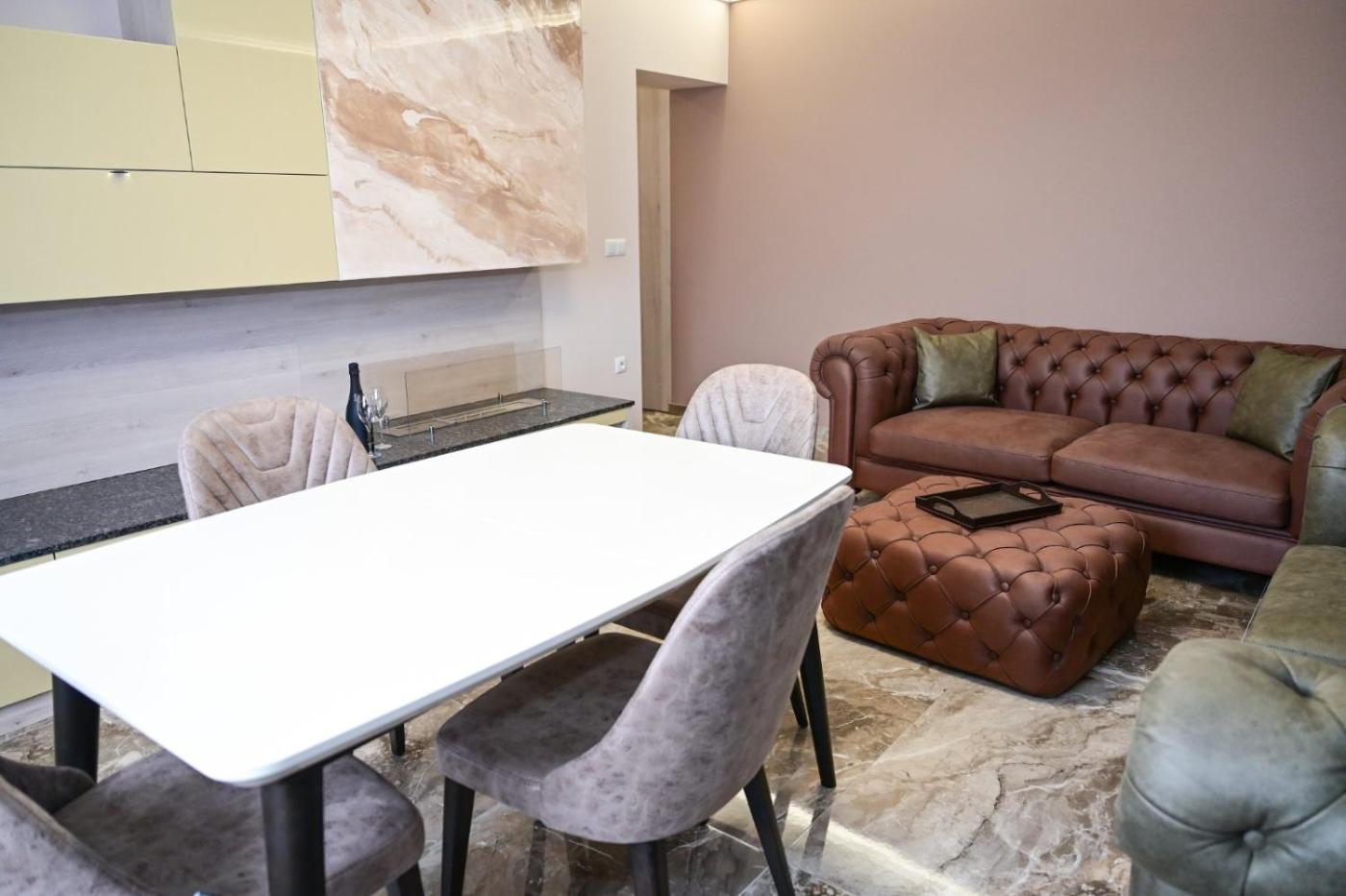 Standard Apartment. This apartment includes 1 living room, 1 separate bedroom and 1 bathroom with a shower and free toiletries. The apartments kitchen, which has a refrigerator, is available for cooking and storing food. The air-conditioned apartment offers a flat-screen TV with cable channels, soundproof walls, a coffee machine, a wardrobe as well as city views. The unit has 3 beds. ;