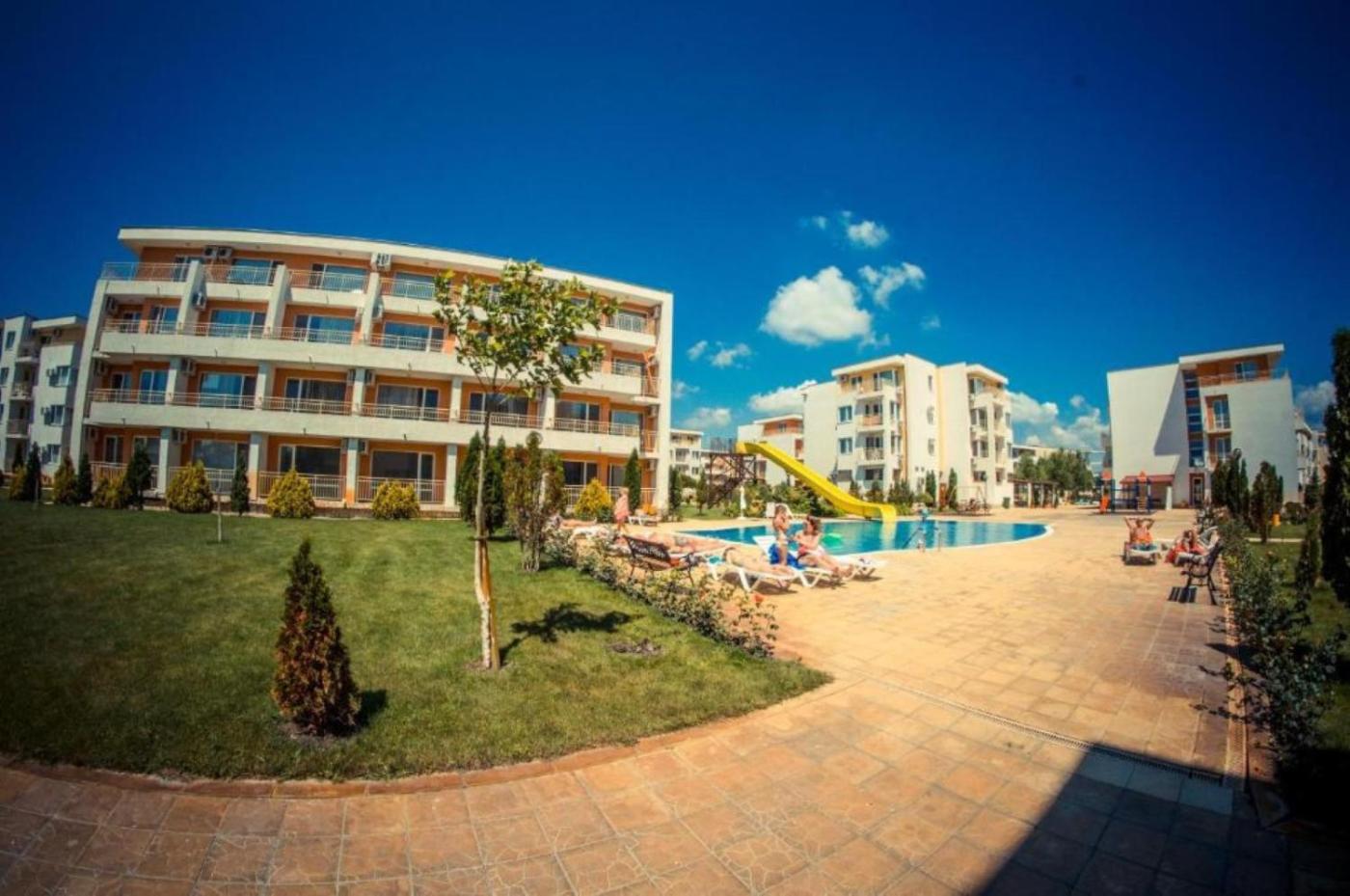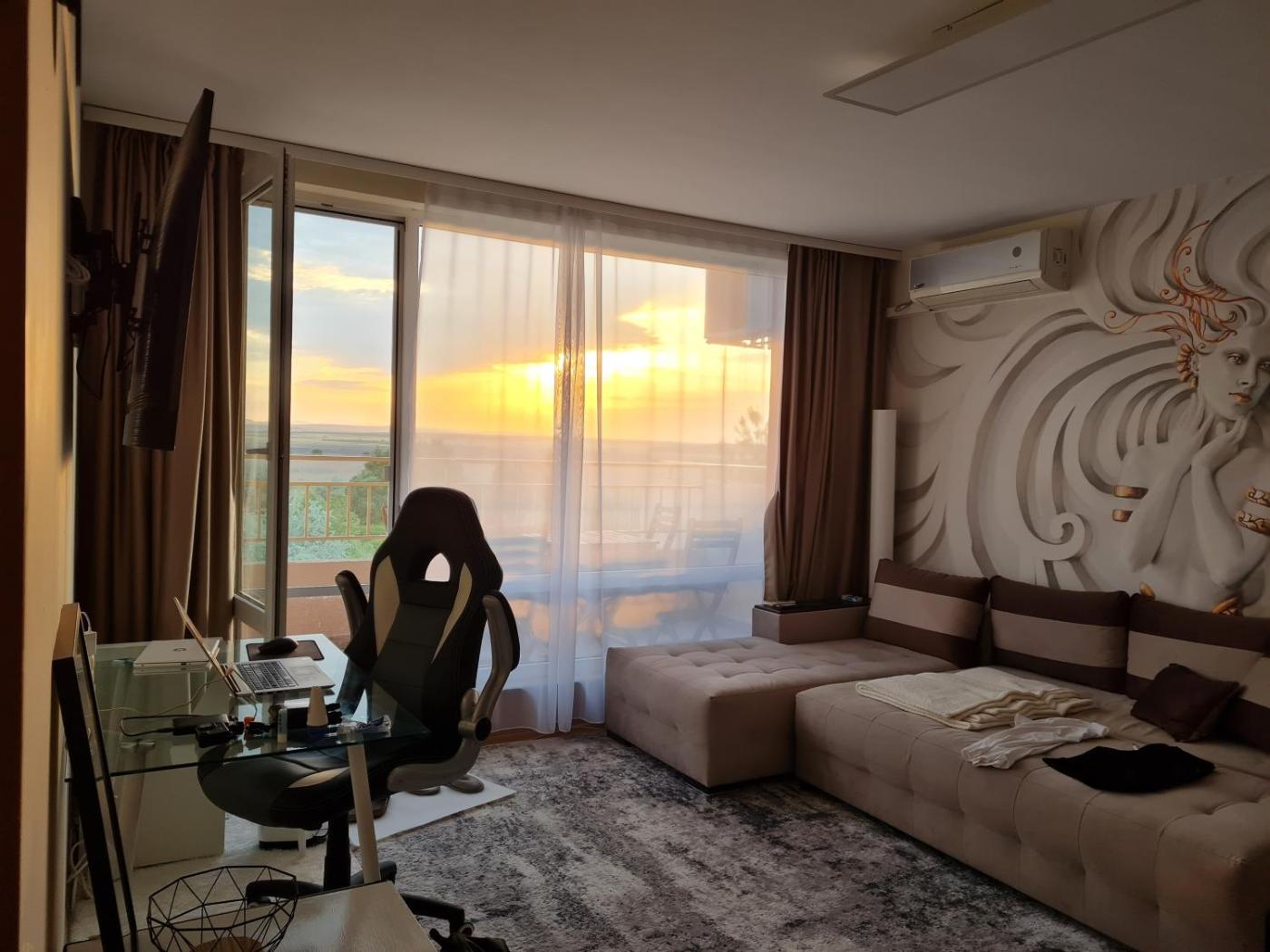 Situated in Sunny Beach, 1.8 km from Sunny Beach and less than 1 km from Action AquaPark, Sunny Beach Fort Club Apartment Top Floor, Stunning View offers a terrace and air conditioning. This apartment features a private pool, a garden and free private parking. The accommodation features a 24-hour front desk, full-day security and currency exchange for guests.